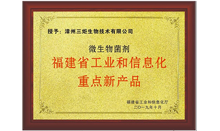 [三炬新聞]三炬微生物菌劑獲得2019年福建省工業(yè)和信息化重點新產(chǎn)品稱號